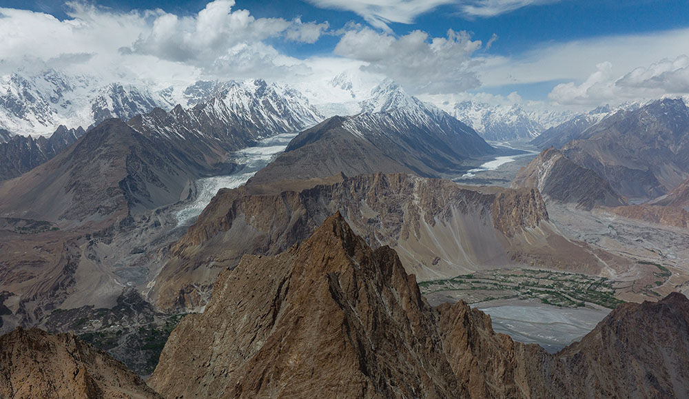 Continue your journey along the Karakoram Highway to Passu, crossing dramatic landscapes. En route, witness the confluence of the Indus and Gilgit rivers, and enjoy views of Nanga Parbat, Rakaposhi, and Attabad Lake. Arrive in Passu beneath the famous Passu Cones. Overnight at guesthouse/hotel in Passu.