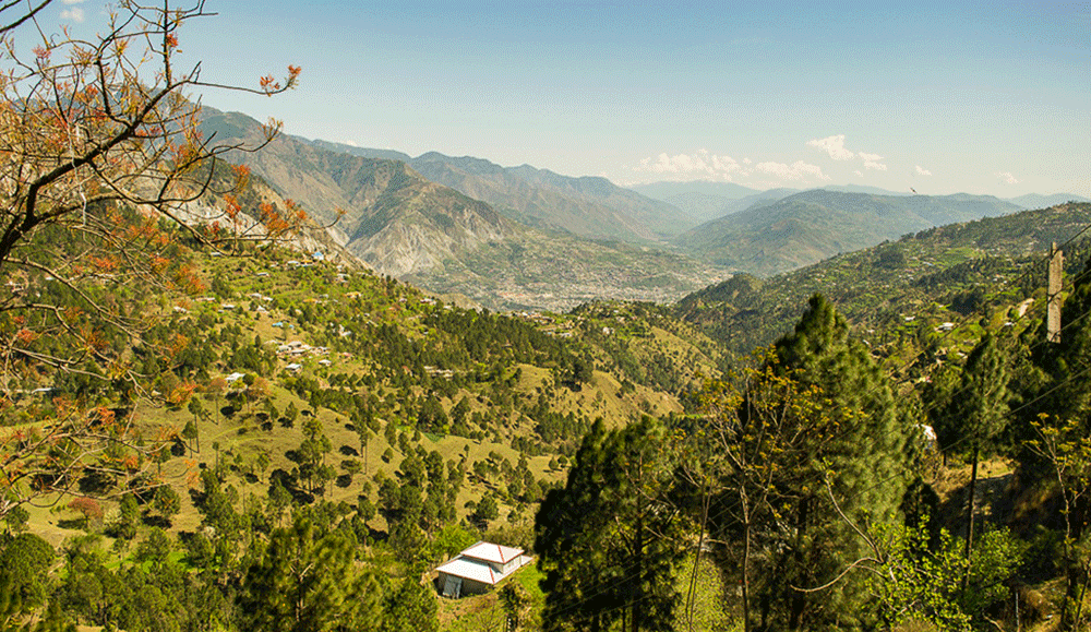 - Spectacular views of Muzaffarabad, pine-covered ridges, and distant snow peaks