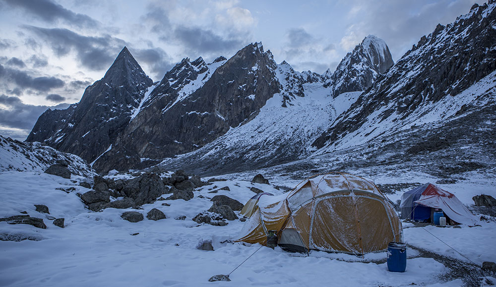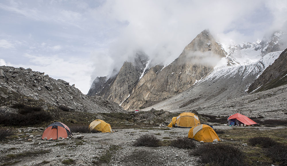 Today you reach the highlight of your journey the K6/K7 Base Camp. Trek through a landscape of towering rock faces and glacial terrain, with views of K6 (7,282m) and K7 (6,934m) dominating the skyline. Spend time exploring the area and taking in the incredible scenery. Overnight in tents.